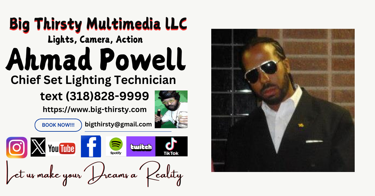 “Big Thirsty Multimedia LLC is a cutting-edge multimedia services company that delivers high-quality, standout work to elevate your brand above the competition. Leveraging advanced technology, a wealth of resources, and a network of industry experts, we bring your vision to life with professionalism and impact.”